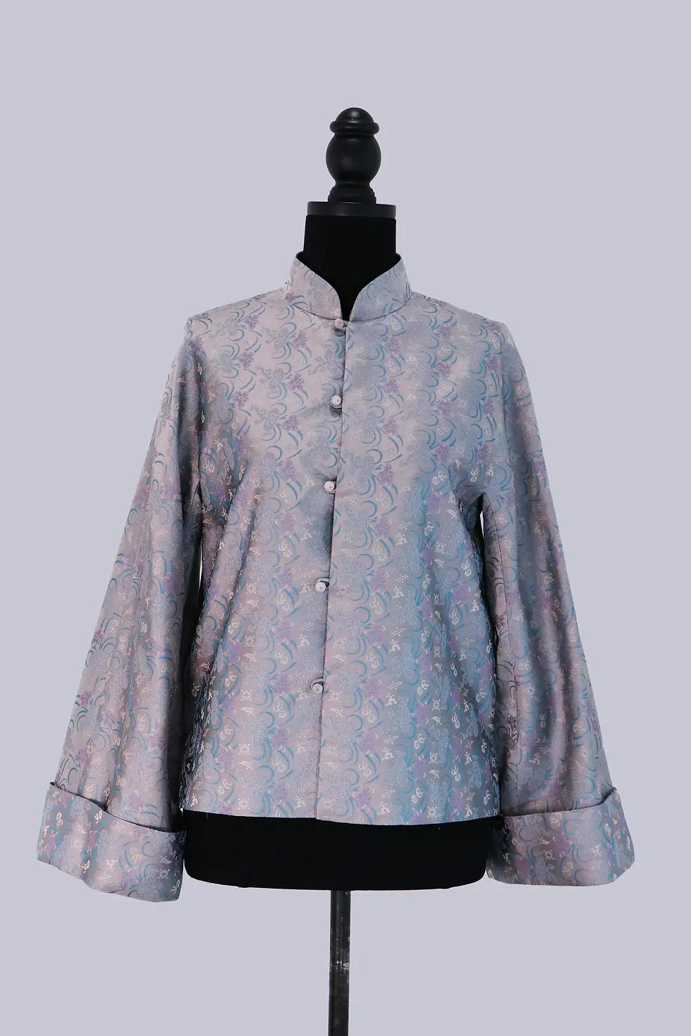 Silver-Lavender Song Brocade Jacket with Mandarin Collar 銀紫宋錦立領織花外套