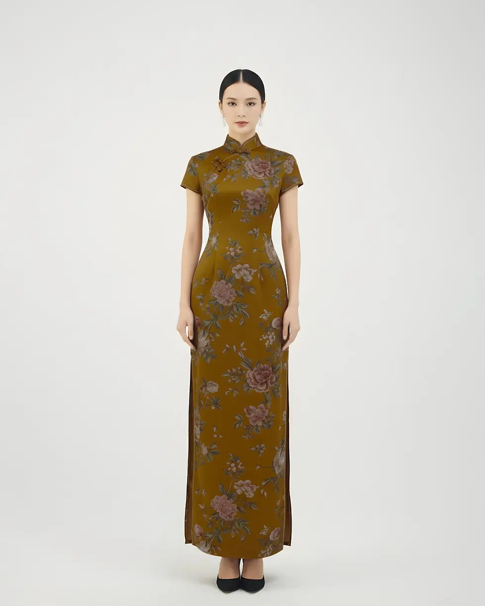 Xiangyunsha Peony Qipao 香雲紗牡丹旗袍