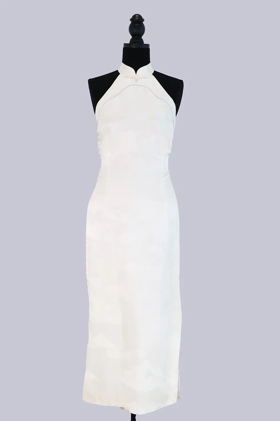 White Jacquard Qipao with Landscape Motif 雪映山影白色提花旗袍