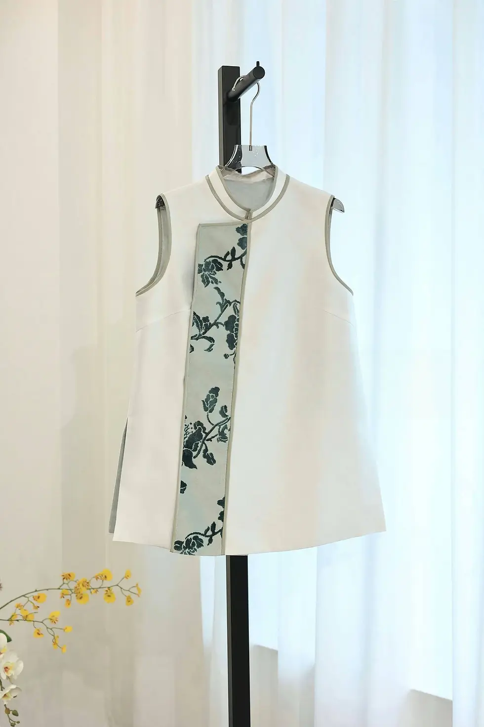 White Silk-Wool & Song Brocade Vase Vest 白色絲毛宋錦寶瓶馬甲