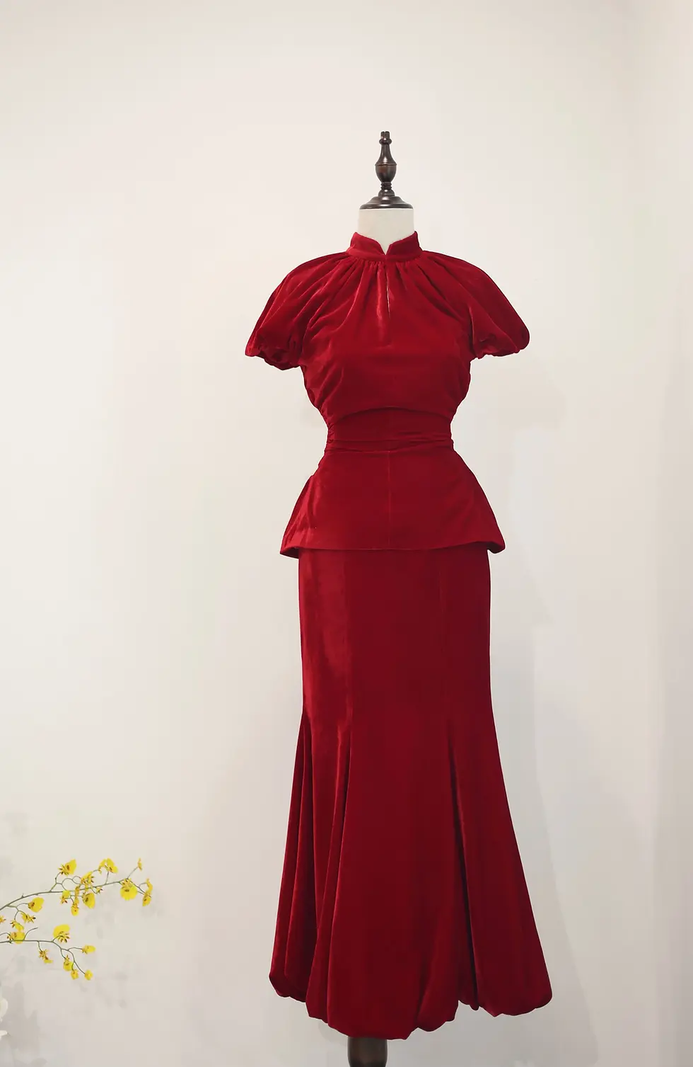 Burgundy Velvet Modern Qipao 酒红天鹅绒改良旗袍