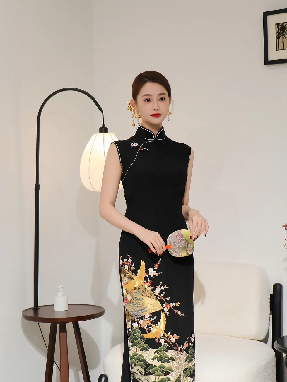 Cranes in Shadow Black & Gold Silk Qipao (Exclusive Piece) 鶴影·黑金正絹旗袍(孤品)